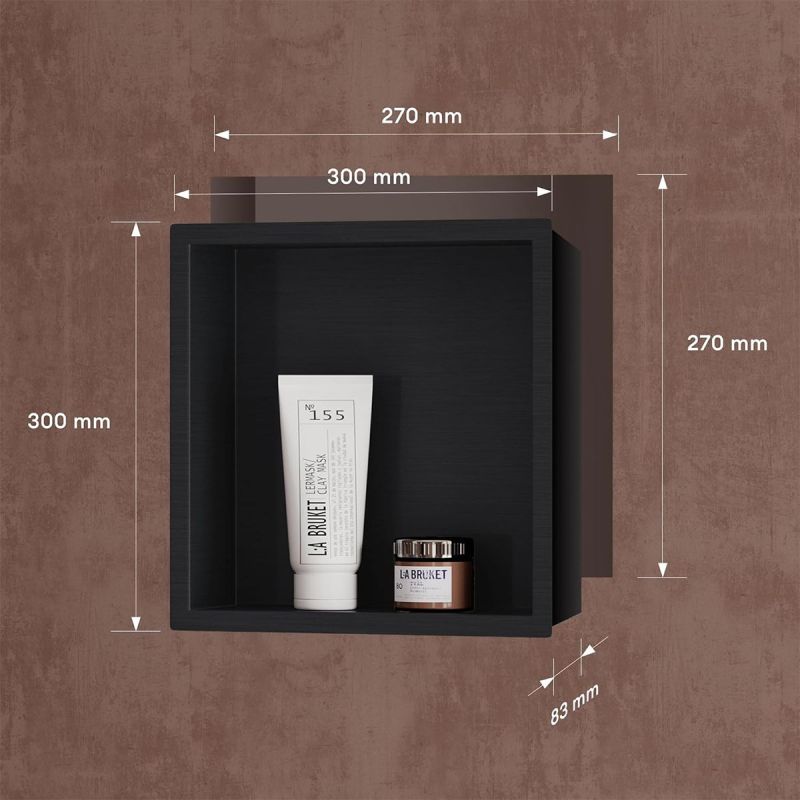 Mehr Platz, weniger visuelle Unordnung – die Einbau-Montage schafft nützlichen Stauraum für Shampoo, Duschgel und Zubehör und hält die Wand sauber und ästhetisch einheitlich.