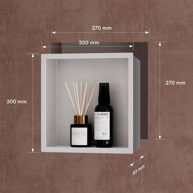 Dusnische, eingebauter Regal im Wand, Stahl, 30x30 oder 60x30, Chrom, Flux