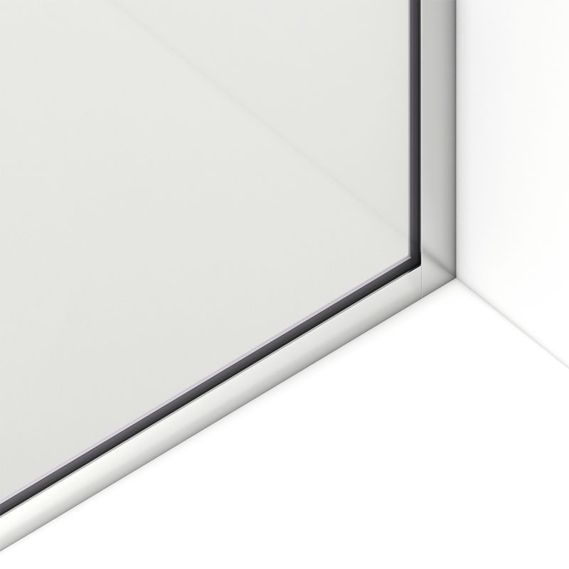 Einfache Pflege: Die Reinigung der Abtrennung ist dank des Glasmaterials und der verchromten Profile einfach, was die Aufrechterhaltung einer glänzenden Oberfläche ohne Wasser- oder Seifenrückstände ermöglicht.