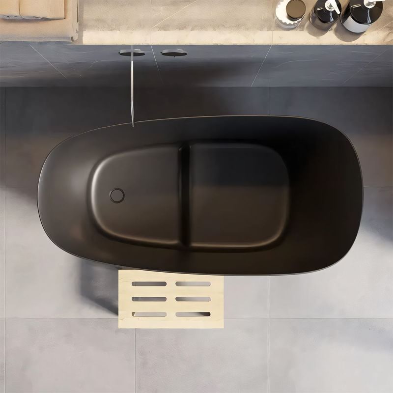 Die freistehende Montage bietet maximale Flexibilität bei der Raumgestaltung und erlaubt die Platzierung der Wanne an jedem Punkt im Bad, unabhängig von der Installation. Dank der matten Oberfläche und der edlen Textur fügt sich das Stück nahtlos in Räume mit industrieller, Japandi- oder minimalistischer Ästhetik ein. Die Badewanne wird mit Überlauf und schwarzem Ablauf geliefert und ist sofort montagebereit.