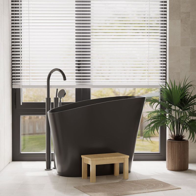 Die freistehende Sakura-Badewanne in Mattschwarz von Ego Interiors vereint reine japanische Ästhetik mit urbanem Modernismus in einem Designobjekt, das das Badezimmer in einen Raum der Introspektion und des dezenten Luxus verwandelt. Ihre schlichte Eleganz und die fließenden Linien machen dieses Sanitärprodukt zum zentralen Element der Raumgestaltung – ideal für alle, die ihrem Bad einen Hauch zeitgenössischer Raffinesse verleihen möchten.