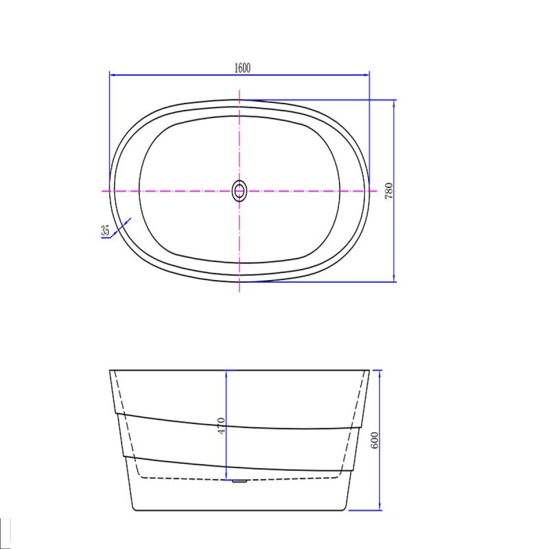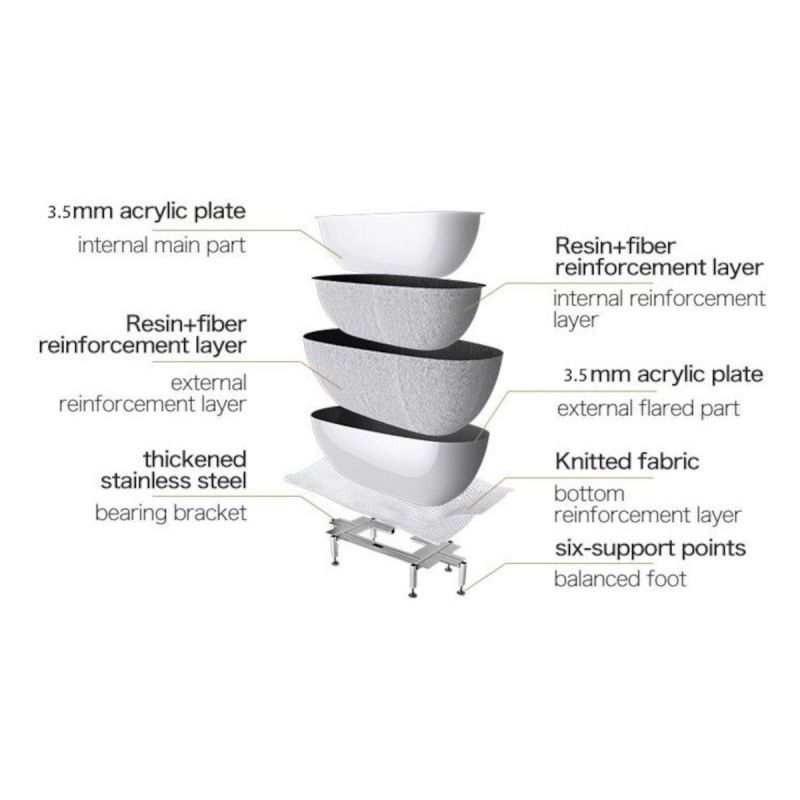 Eine Badewanne mit modernem Design, ovaler Form und besonderem Finish. Hergestellt aus doppelschichtigem Acrylharz, was für eine hohe Wärmedämmung sorgt und die Reinigung erleichtert.