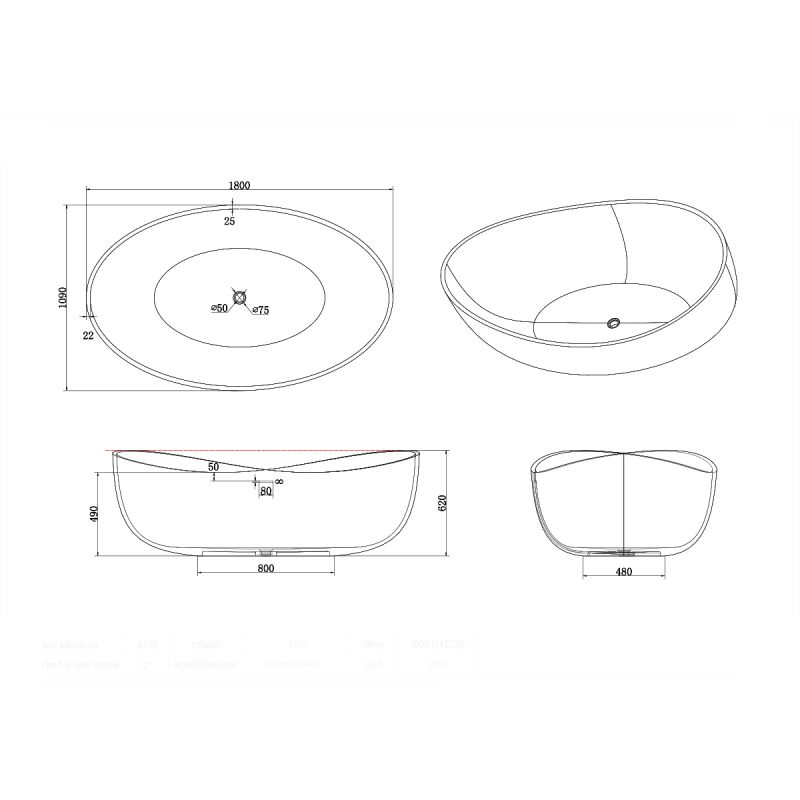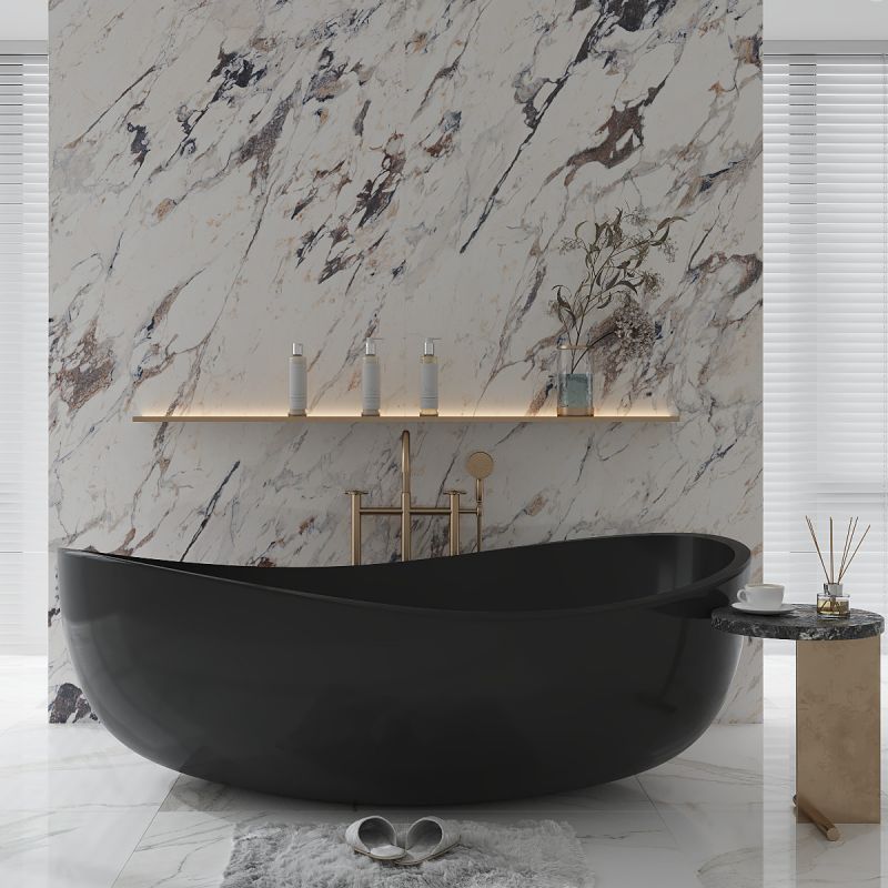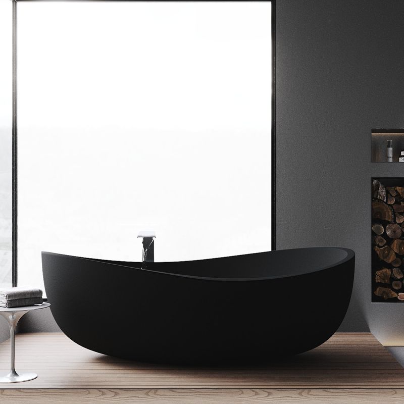 Freistehende Badewanne, Mineralkomposit, inklusive schwarzem Ablaufventil, Mattschwarz, 180x109 cm, Lirio