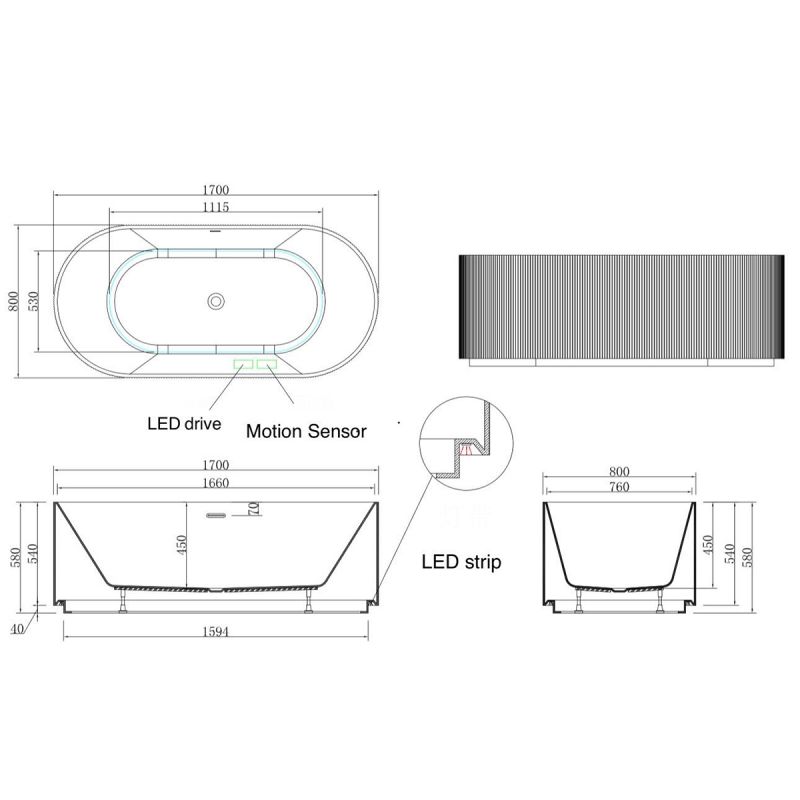 Personalisierte Ambientebeleuchtung: Die freistehende Badewanne Eliza verleiht Ihrem Badezimmer eine elegante Note mit einem LED-Beleuchtungsband und einem Bewegungssensor, der eine angenehme und individuell anpassbare Beleuchtung bietet.