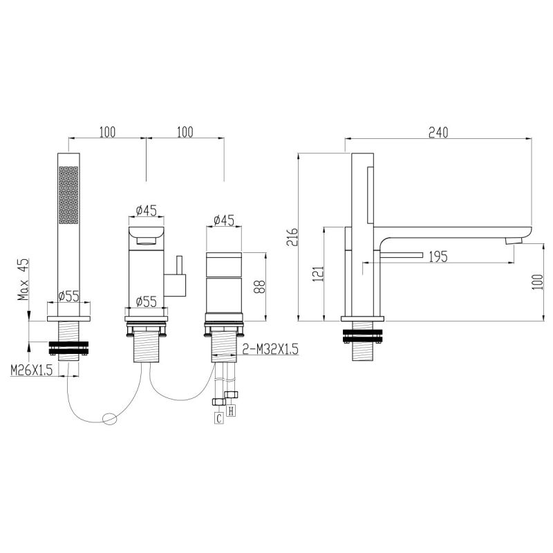 Speziell konzipiert für freistehende oder eingebaute Badewannen besteht die Toledo-Armatur aus drei separaten Komponenten: