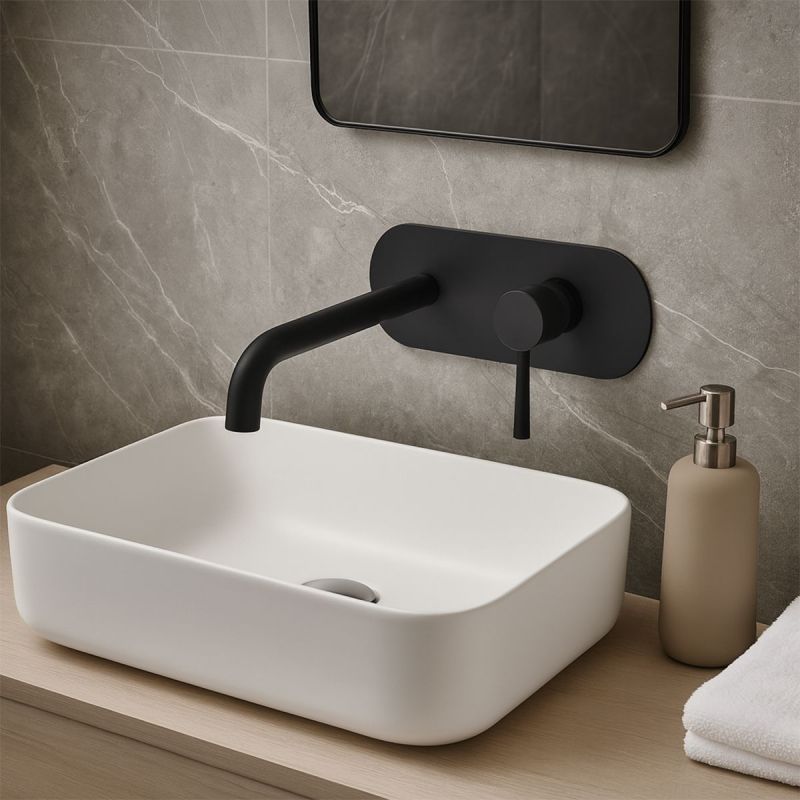 Moderner und vielseitiger Stil – das Matt-Schwarz-Finish verleiht ein elegantes, zeitgemäßes Erscheinungsbild, passend für verschiedene Badezimmerstile