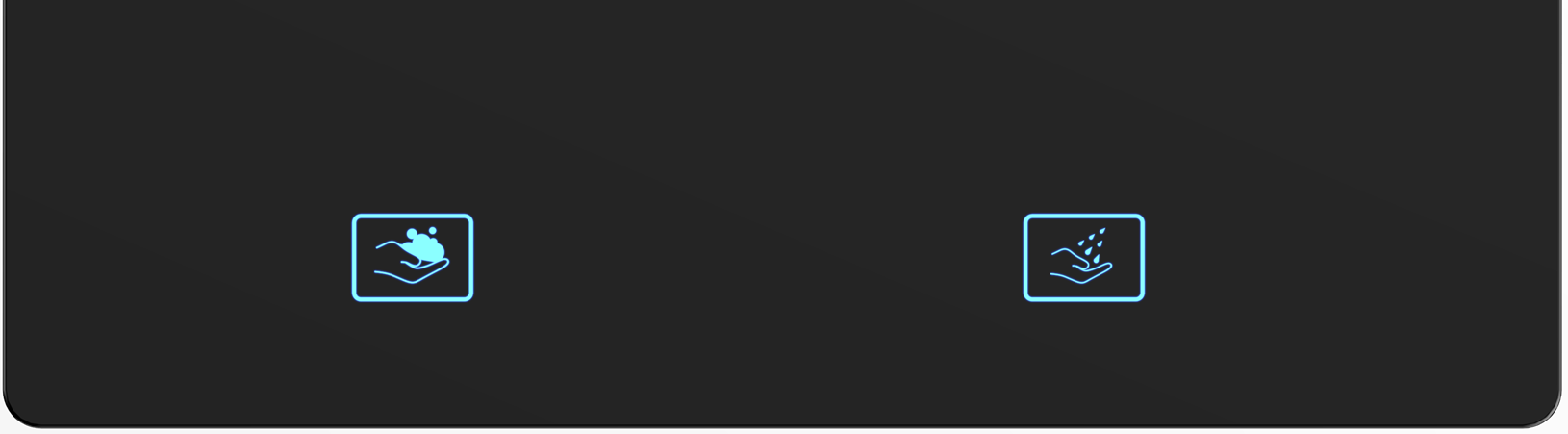 Die Armatur ist mit einer Flüssigkeitsmangel-Erinnerungsfunktion ausgestattet sowie mit einer Schutzfunktion, die den Wasserfluss nach einer Minute automatisch stoppt. Diese Zeit kann in drei Geschwindigkeiten angepasst werden. Im Betrieb blinkt das Logo in blau, im rot blinkenden Zustand zeigt es an, dass der Flüssigkeitsstand zu niedrig ist, und bei ständig rotem Licht ist der Flüssigkeitsstand aufgebraucht.