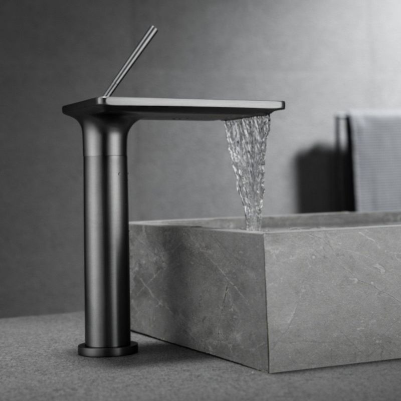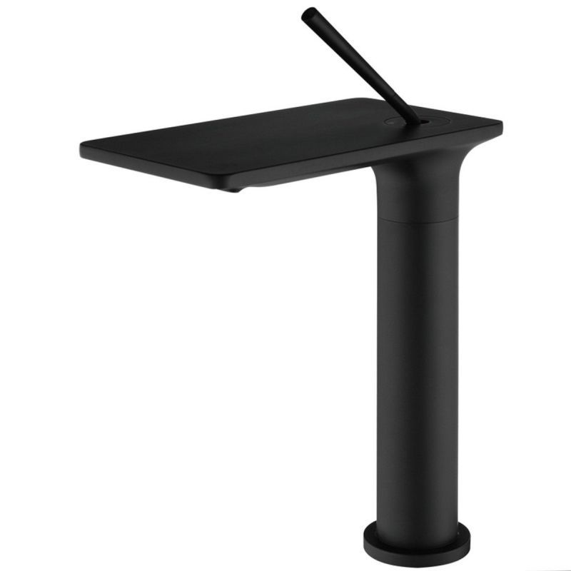 Waschbeckenarmatur, Wasserfall-Design, mit Perlator, Mattschwarz, Aufsatzmontage, Höhe 26 cm, Dion