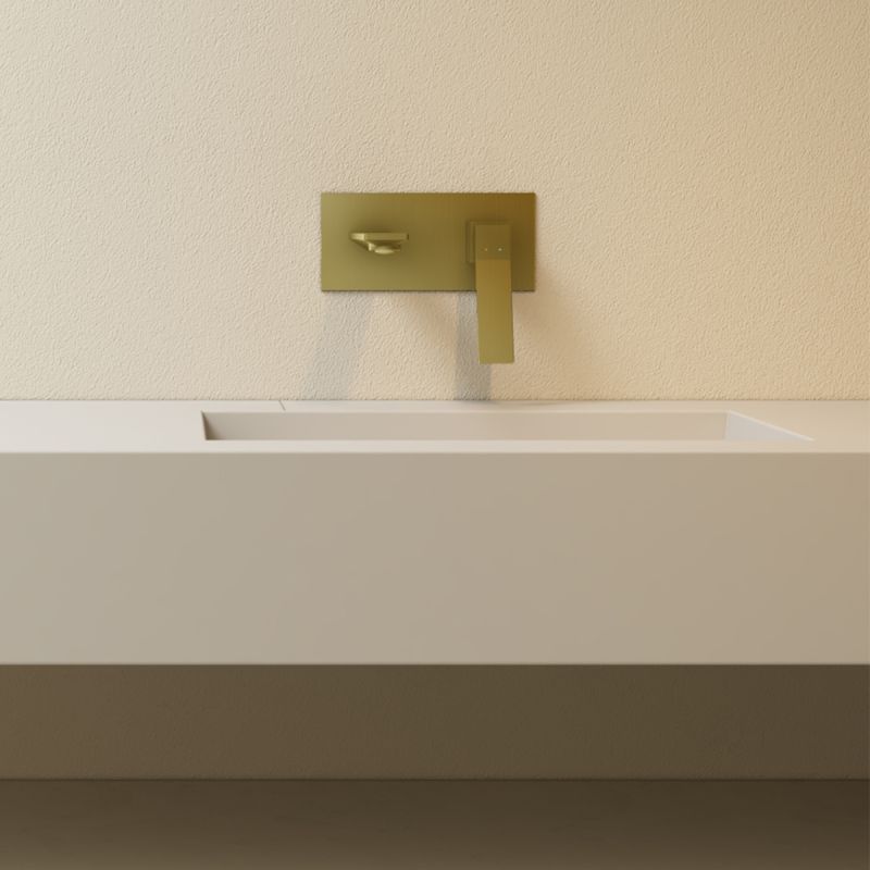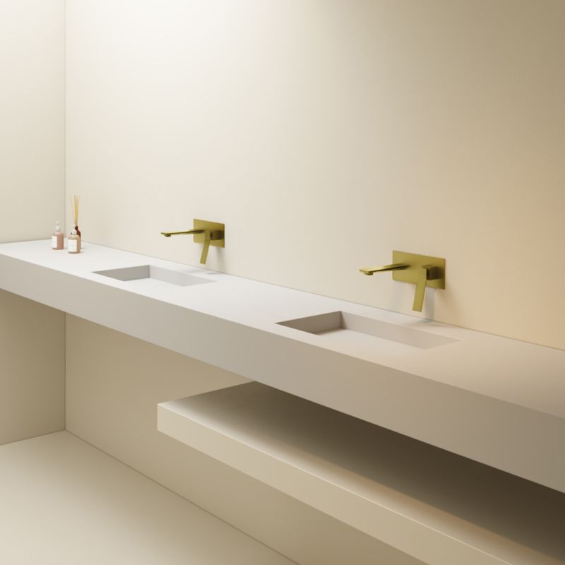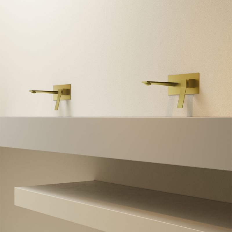Vervollständigen Sie Ihr Badezimmer mit einem Hauch von Luxus und Raffinesse – die Waschbeckenarmatur Delos mit wandbündiger Unterputzmontage vereint modernes Design mit herausragender Funktionalität. Mit ihrer matten Goldoberfläche beeindruckt diese Armatur durch Eleganz und Vielseitigkeit – ideal sowohl für das Waschbecken als auch für die Badewanne.