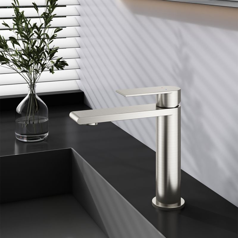 Waschbeckenarmatur, Nickel Matt, mit Perlator, Edelstahl, Waschbeckenmontage, Sereno