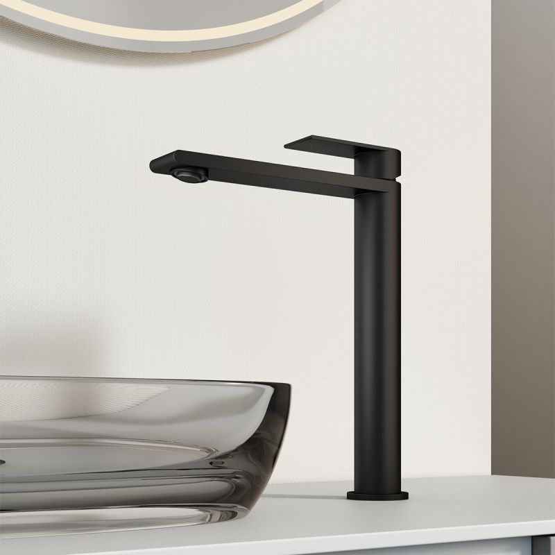 Vervollständigen Sie das Design Ihres Badezimmers mit der Waschbeckenarmatur Sereno von Ego Interiors, einem hohen Modell, das speziell für die Montage auf der Arbeitsplatte entwickelt wurde. Das raffinierte mattschwarze Finish und das hochwertige Edelstahlmaterial machen diese Armatur zur idealen Wahl für zeitgenössische Räume. Sereno bietet nicht nur ein makelloses Design, sondern auch exzellente Leistung und ist die perfekte Lösung für Aufsatzwaschbecken.