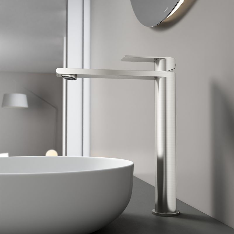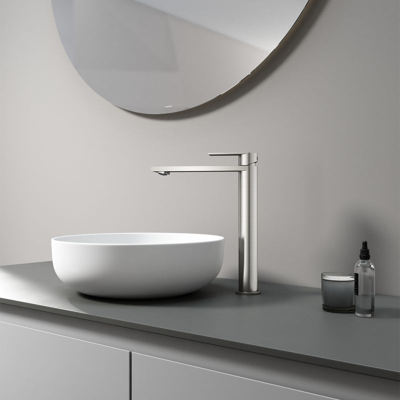 Die Sereno-Armatur wurde für die Montage auf der Arbeitsplatte entwickelt und ist ideal für hohe Waschtische, wodurch Ihrem Badezimmer ein moderner und organisierter Look verliehen wird.