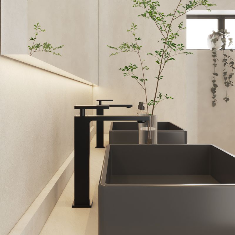Die Armonia-Armatur ist für die Aufsatzmontage konzipiert, einfach zu installieren und fügt sich perfekt in moderne Badezimmerkonfigurationen ein. Ihr hohes Design und das mattschwarze Finish fügen Stil und Funktionalität hinzu.