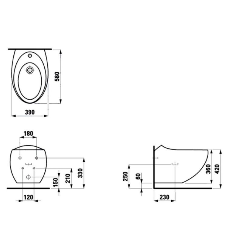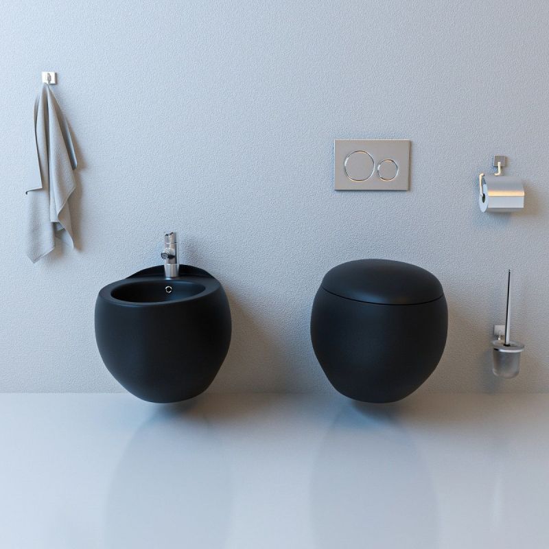 Bidet EGO Angelo, Mattschwarz, 58x39 cm, Wandmontage, mit Überlauf