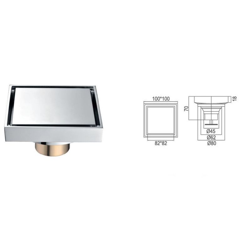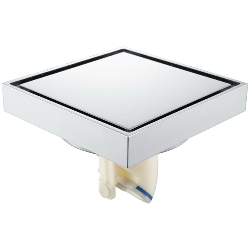 Bodenablauf, Anti-Geruch, Messing, Chrom, 100x100 mm, vertikaler Abgang 45 mm
