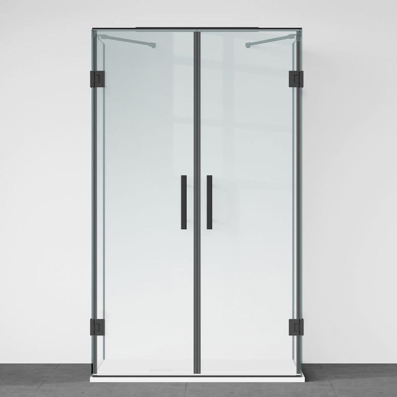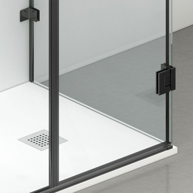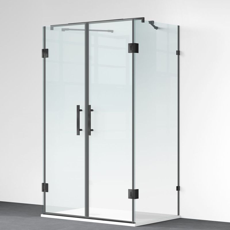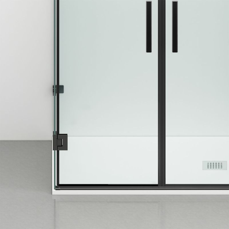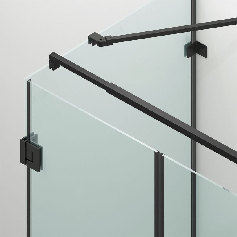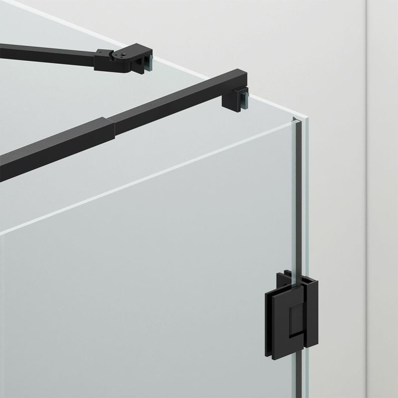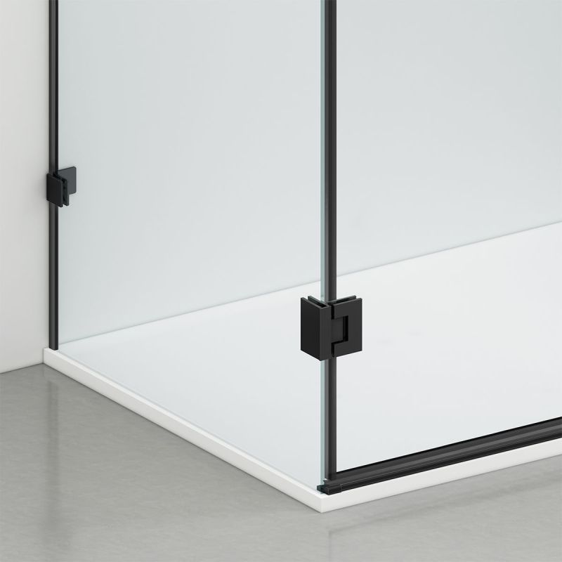 Trinity beeindruckt durch sein mattschwarzes Profil, ergänzt durch den gleichfarbigen Griff, der einen modernen Kontrast und ein exklusives Erscheinungsbild bietet. Die U-Form mit drei Glasseiten sorgt für Offenheit und Helligkeit und schafft das Gefühl einer begehbaren Dusche mit großem, leicht zugänglichem Eingang.