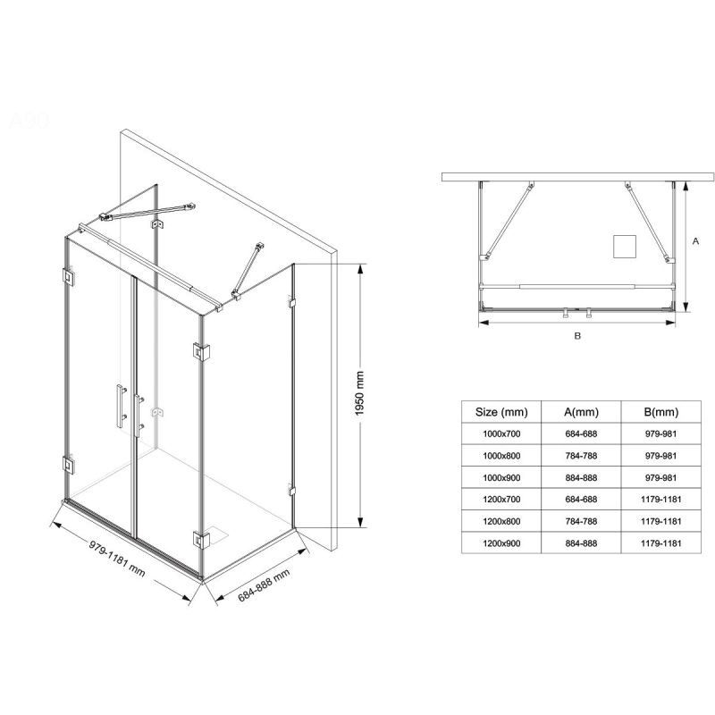 Erhältlich in mehreren Größenvarianten zwischen 70–90 cm (Seitenwände) und 100–120 cm (Frontseite) ist die Trinity-Kabine ideal für große und mittlere Badezimmer und fügt sich harmonisch in verschiedene Raumtypen ein.