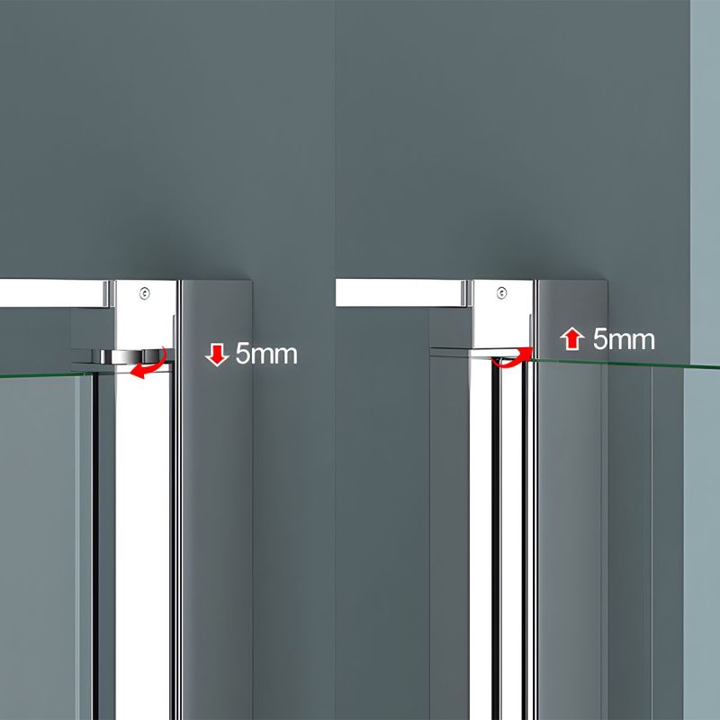 Die Kabine ist beidseitig montierbar (links oder rechts) und verfügt über Wandprofile mit einem Verstellbereich von 0–15 mm, ideal auch für leicht unebene Wände. Mit verstellbaren Abmessungen zwischen 90 und 100 cm auf jeder Seite lässt sie sich optimal in unterschiedliche Badgrößen integrieren.