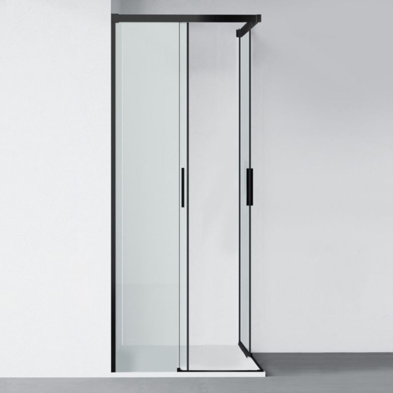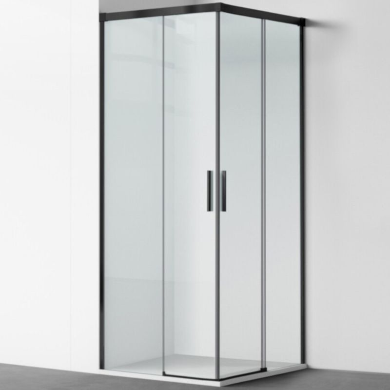 Duschkabine, 2 Schiebetüren, 6 mm Sicherheitsglas, 80–100 x 80–100 cm, mattschwarzes Profil, Medea