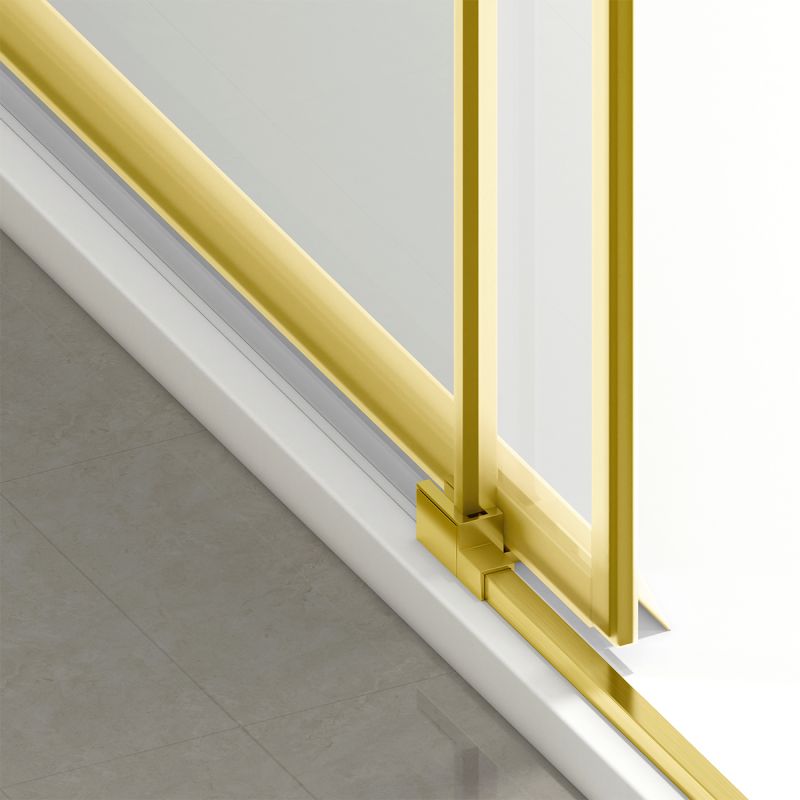 Verwandle dein Badezimmer in einen eleganten Raum mit der Hanes Duschkabine. Das mattgoldene Profil und der Griff verleihen nicht nur eine ästhetisch ansprechende Optik, sondern auch einen Hauch von Luxus bei jedem Duschen. Die feste Wand und die Schiebetür schaffen ein modernes Design und bieten gleichzeitig unvergleichlichen Komfort bei jeder Nutzung.