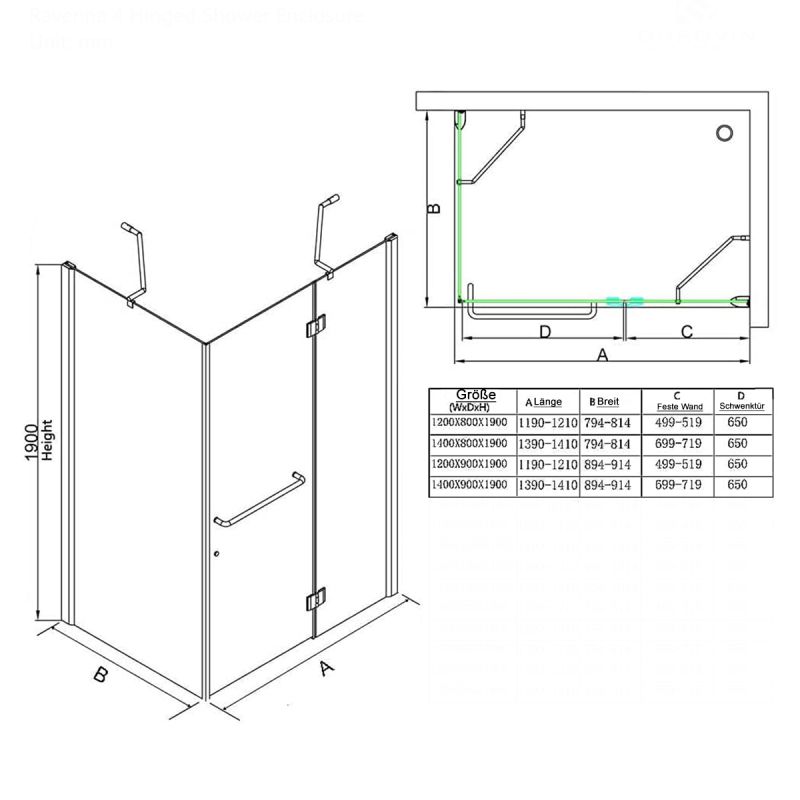 Mit ihrem minimalistischen und eleganten Design fügt sich die EGO-04 perfekt in jeden Badezimmerstil ein. Die L-förmige Konfiguration ermöglicht eine effiziente Eckmontage, optimiert den verfügbaren Platz und verwandelt ungenutzte Bereiche in eine echte Wohlfühloase. Erhältlich in flexiblen Größen (120-140x80-90 cm), eignet sich diese Kabine sowohl für großzügige als auch für kompakte Badezimmer.