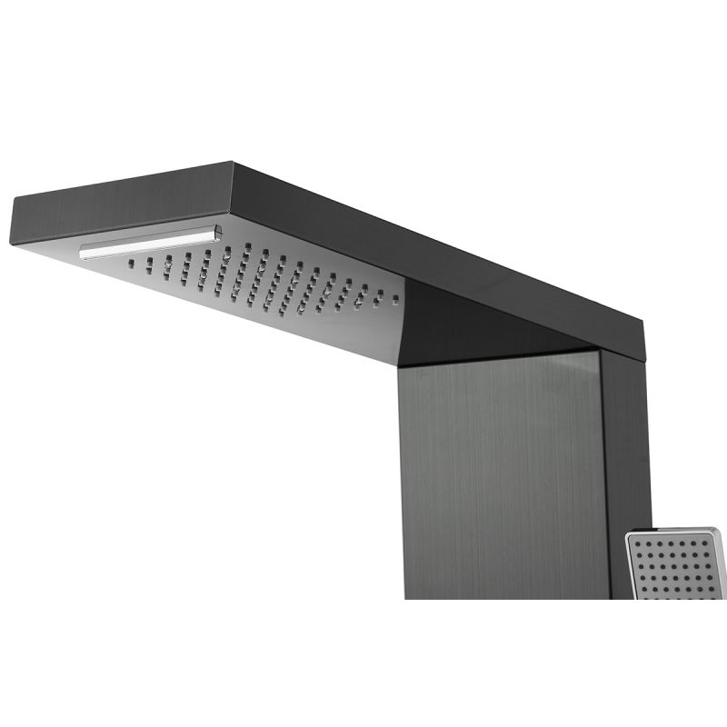 Aurora Duschpaneel mit LED-Beleuchtung, Schwarzer Edelstahl – 5 Funktionen, Tropenregen, Wasserfall und Handbrause