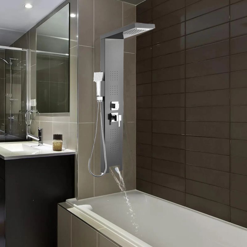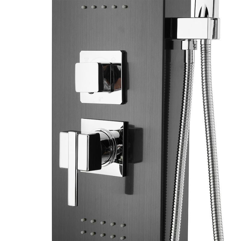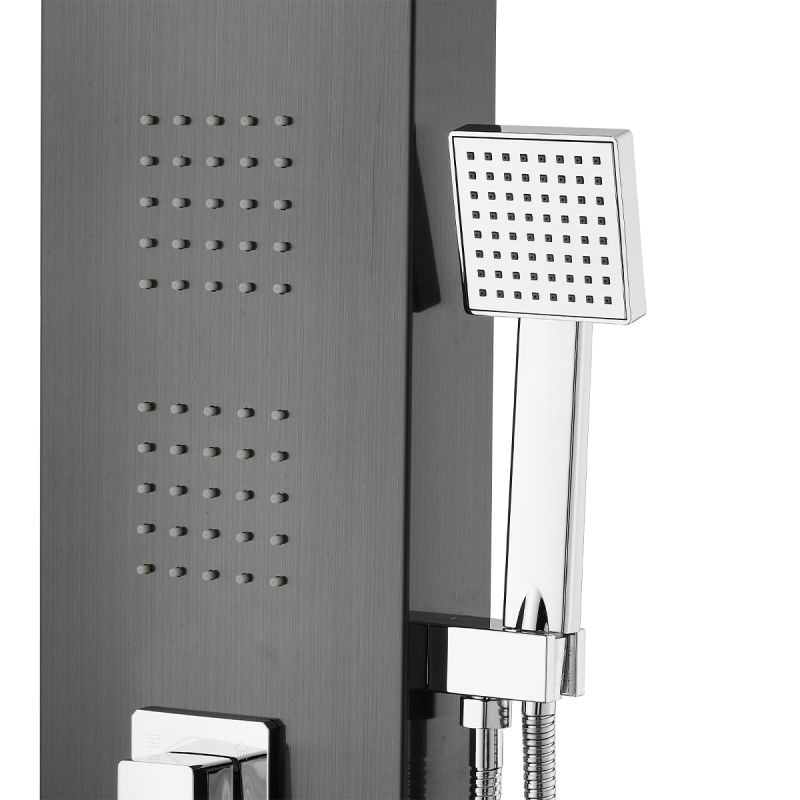 Gefertigt aus hochwertigem Edelstahl 304, bietet das Infinity-Duschpaneel unvergleichliche Haltbarkeit und Korrosionsbeständigkeit. Das matte, dunkelgraue Finish verleiht Ihrem Badezimmer einen modernen und stilvollen Look und lässt sich in verschiedene Designstile integrieren. Dieser elegante Look ist zudem pflegeleicht, kratzfest und verhindert Fleckenbildung.