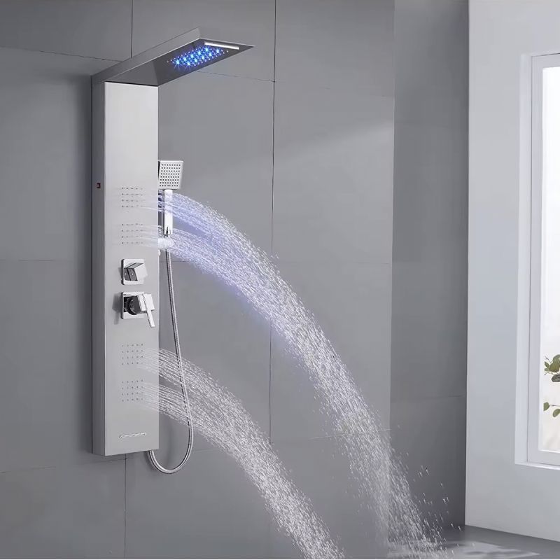 Das Infinity Duschpaneel von Ego Interiors wurde entwickelt, um Funktionalität und modernes Design in Ihr Badezimmer zu bringen. Mit glänzendem Chrom-Finish bietet dieses Panel ein luxuriöses Duscherlebnis, ergänzt durch fünf vielseitige Funktionen und batteriebetriebene LED-Beleuchtung. Hergestellt aus hochwertigen Materialien und ausgestattet mit innovativen Technologien, verwandelt das Infinity-Paneel jede Dusche in ein Verwöhnprogramm.
