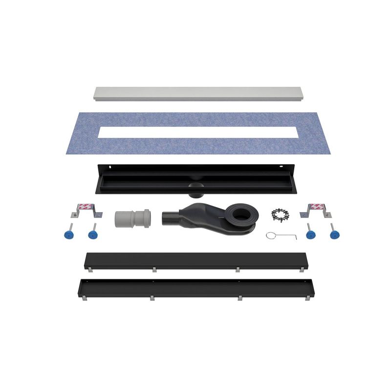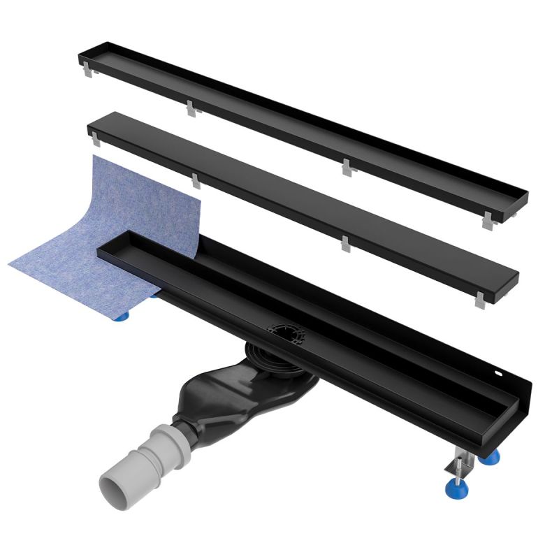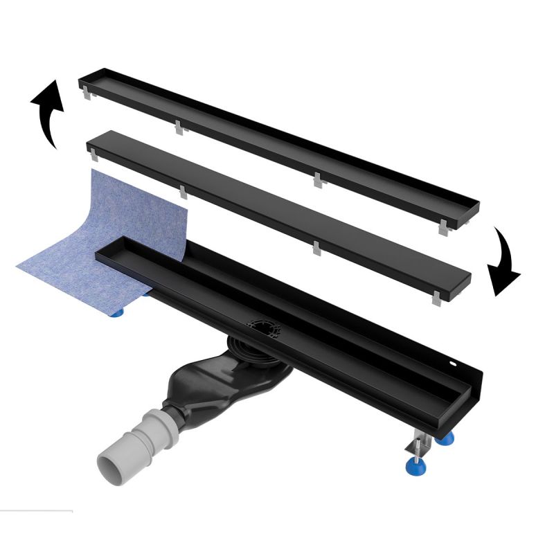 Duschrinne, Wandmontage, Größe 70–100 cm, Edelstahl, Mattschwarz