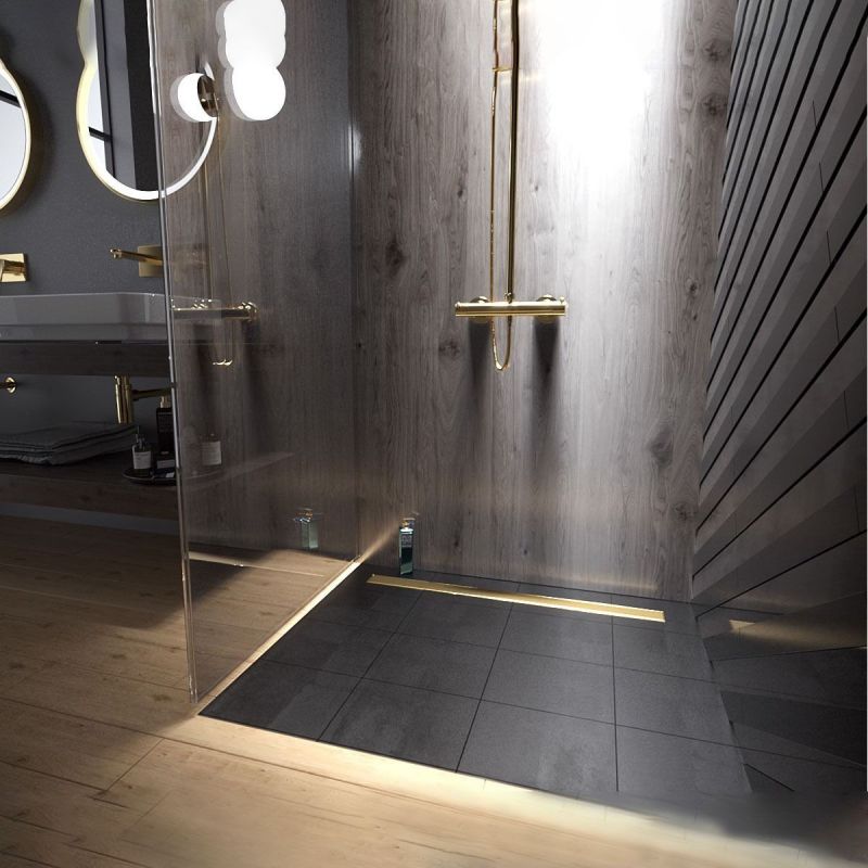 Premium Gold lineare Abflüsse werden für Badezimmer empfohlen, in denen elegantes Aussehen, höchste Verarbeitungsqualität und Funktionalität gefragt sind Angelegenheit. Jeder Abfluss wurde mit Liebe zum kleinsten Detail hergestellt. Die glänzende Goldfarbe verleiht jedem Badezimmer Eleganz. Der Duschabfluss ist ein Produkt von bester Qualität. Der in der Produktion verwendete Edelstahl stammt aus europäischen Stahlwerken (Deutschland, Italien). Jede Stahlcharge verfügt über ein eigenes Zertifikat, sodass wir sicher sein können, dass es sich um einen hochwertigen Stahl handelt. Für die Herstellung von Abflüssen wird seit Jahren die gleiche Stahlsorte verwendet, daher sind wir sicher, dass sie ihr Aussehen über Jahre hinweg behält.