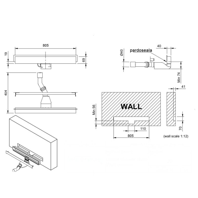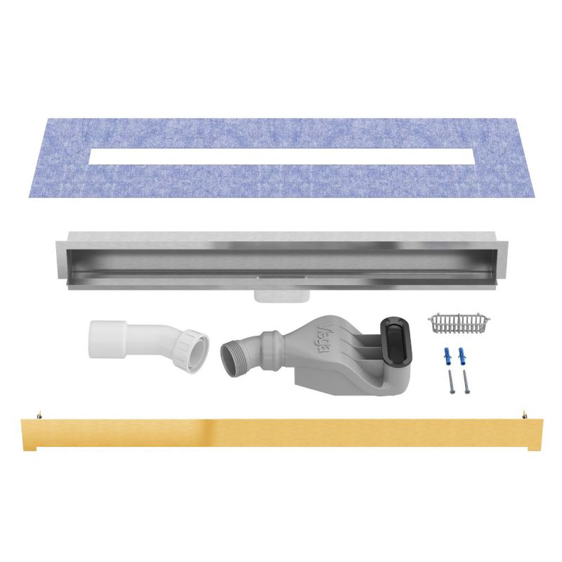 Duschrinne zur Wandmontage, Viega Siphon, Mattgold, Größe 60, 80 cm, Breite 7,4 cm, Edelstahl