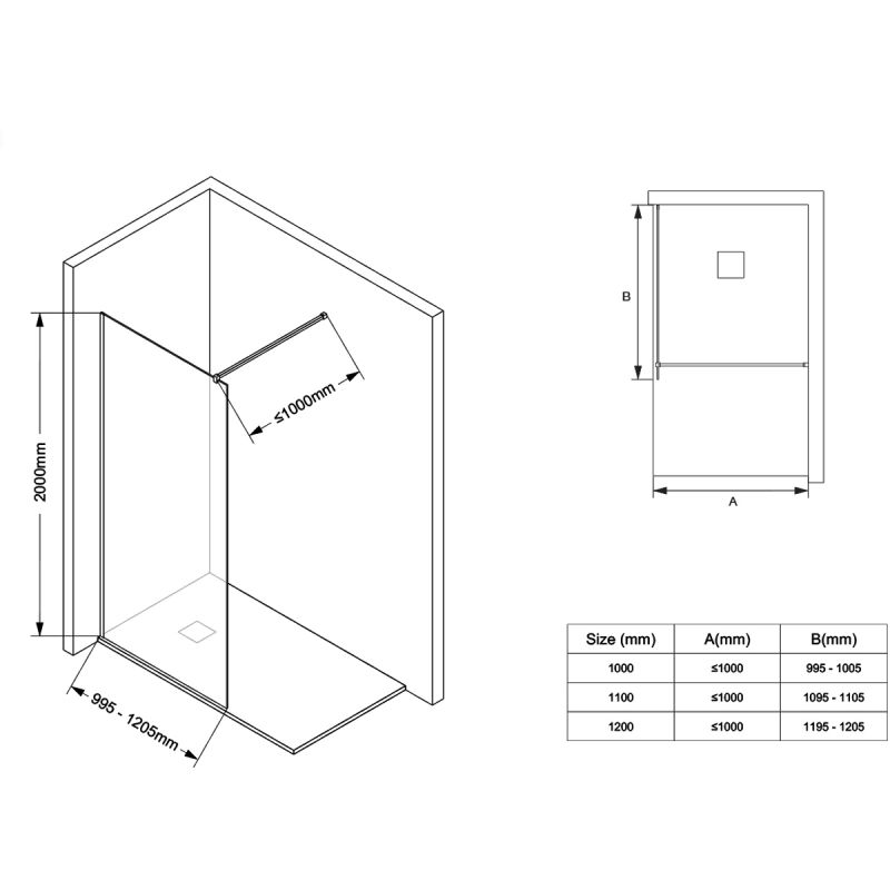 - Anpassbare Abmessungen: Mit anpassbaren Abmessungen von 100-120 cm in der Breite und einer großzügigen Höhe von 200 cm kann diese Duschwand perfekt an Ihren Badezimmerbereich angepasst werden, unabhängig von dessen Konfiguration.