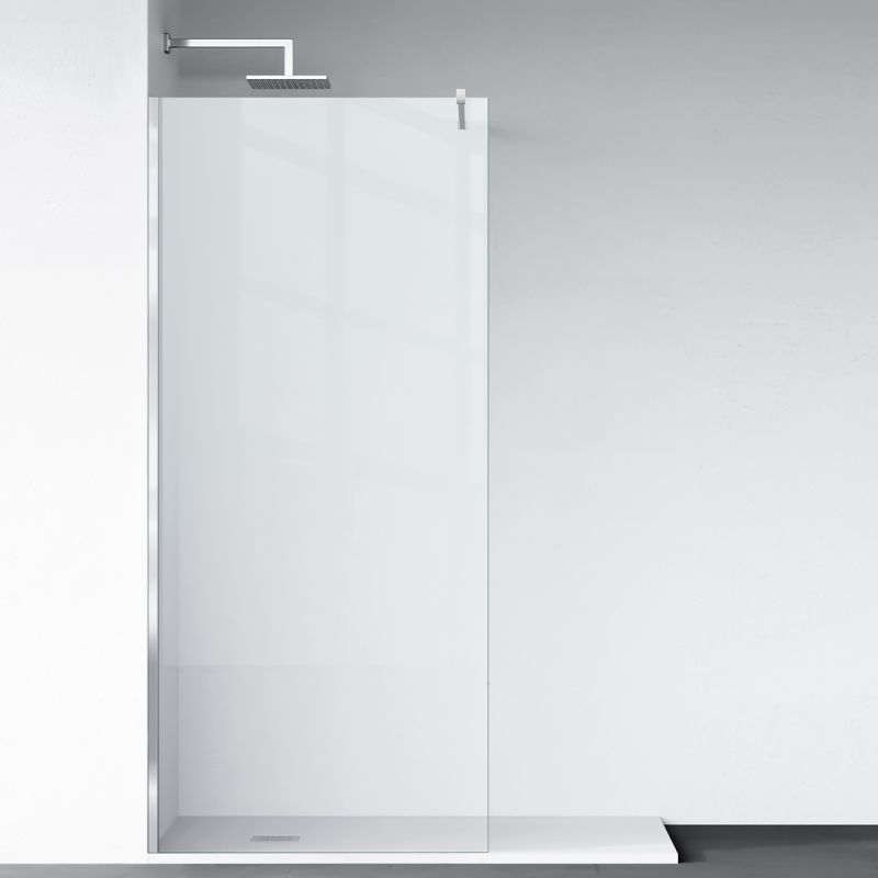 Verchromte Aluminiumprofil: Das matte verchromte Aluminiumprofil verleiht der Duschwand ein modernes und raffiniertes Aussehen. Dieser elegante Kontrast zwischen Glas und Profilen fügt dem Badezimmer ein subtiles und raffiniertes Designelement hinzu.