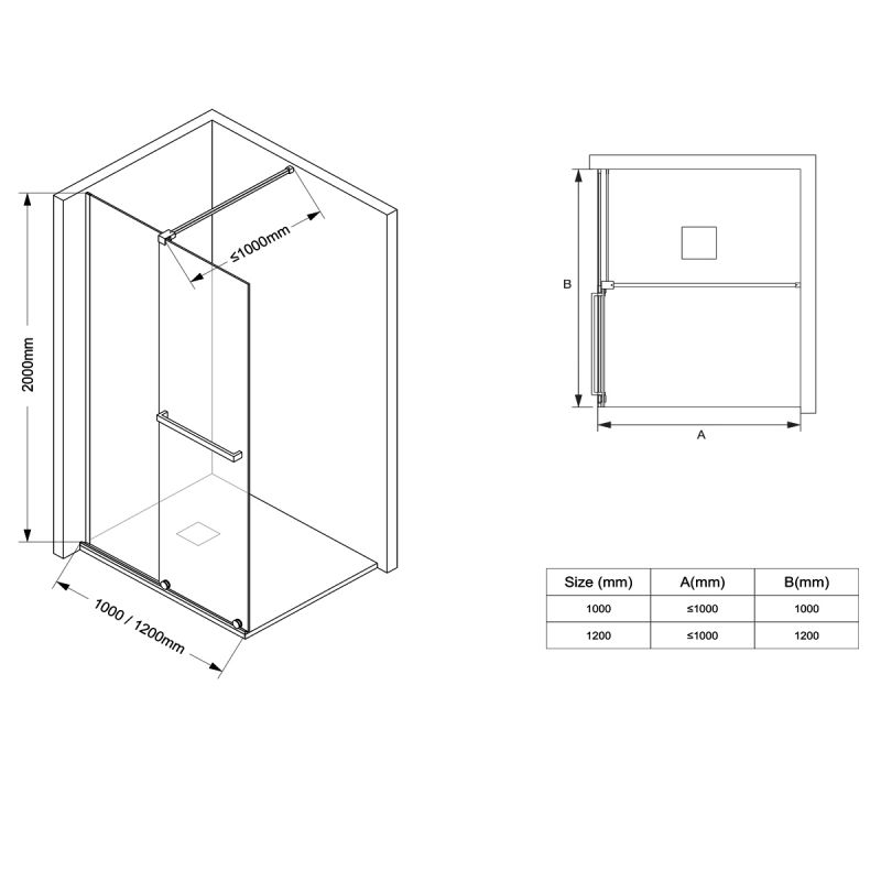 Abmessungen: Mit den Maßen von 100-120x200 cm lässt sich diese Duschwand mühelos an die Größe Ihres Badezimmers anpassen. Diese Vielseitigkeit ermöglicht eine perfekte Integration in jedes Badezimmer, egal ob klein oder groß.