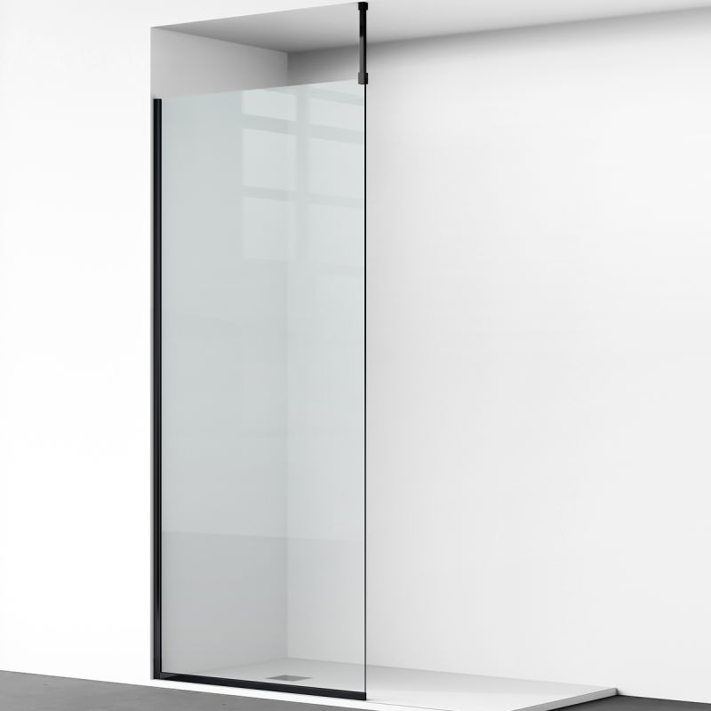 Makellose Ästhetik: Mit dem matten schwarzen Profil und Griff wird die Duschwand Armando zum eleganten Blickfang in Ihrem Badezimmer.