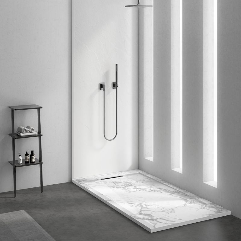 Verleihen Sie Ihrem Badezimmer neue Eleganz und Funktionalität mit der Duschwanne Antonio von Ego Interiors – ein echtes Designobjekt, das moderne Technologie mit der zeitlosen Ästhetik von Naturmarmor harmonisch vereint. Mit ihrem edlen Carrara Arabescato-Finish in mattem Weiß und einer dezenten Marmorstruktur ist diese Duschwanne nicht nur eine funktionale Wahl, sondern auch ein stilvolles Highlight, das jedem Badezimmer zusätzlichen Wert verleiht.