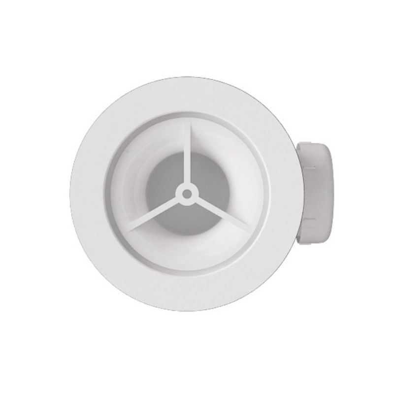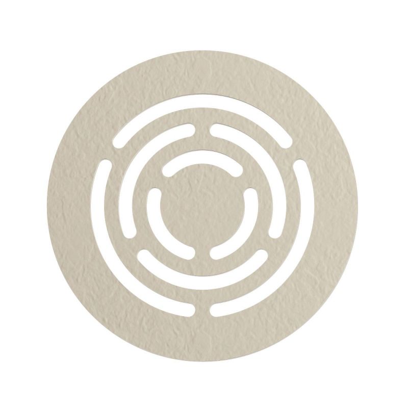 Verdeckter Ablauf mit hoher Durchflussleistung von 25,8 Litern pro Minute, ausgestattet mit einer Ablaufabdeckung aus Edelstahl (Durchmesser: 13,3 cm, Stärke: 1,2 mm) in der Farbe Creme. Der Ablauf ist gemäß der Norm EN 274-1:2002 zertifiziert.