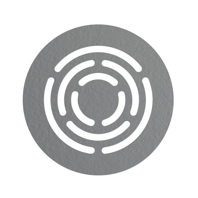 Verdeckter Ablauf mit hoher Durchflussleistung von 25,8 Litern pro Minute, ausgestattet mit einer Ablaufabdeckung aus Edelstahl (Durchmesser: 13,3 cm, Stärke: 1,2 mm) in der Farbe Zementgrau. Der Ablauf ist gemäß der Norm EN 274-1:2002 zertifiziert.