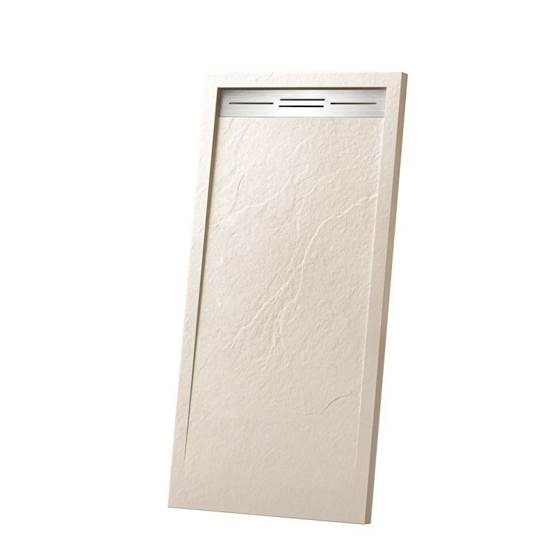 Duschwanne, Mineralkomposit, Maße 90-100x120-160 cm, Höhe 2,8 cm, zuschneidbar, Creme, Gonzalo