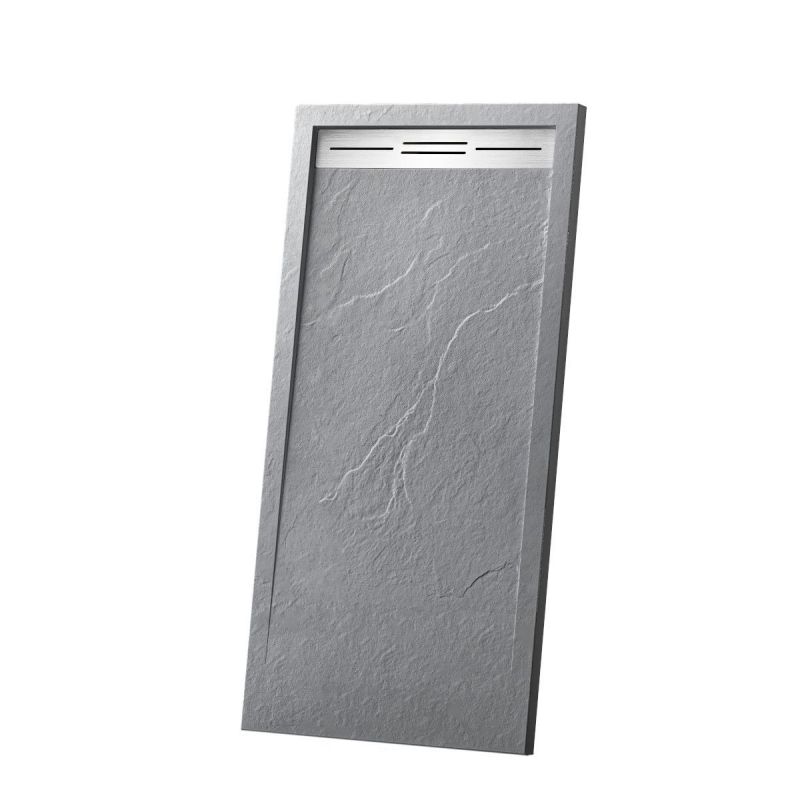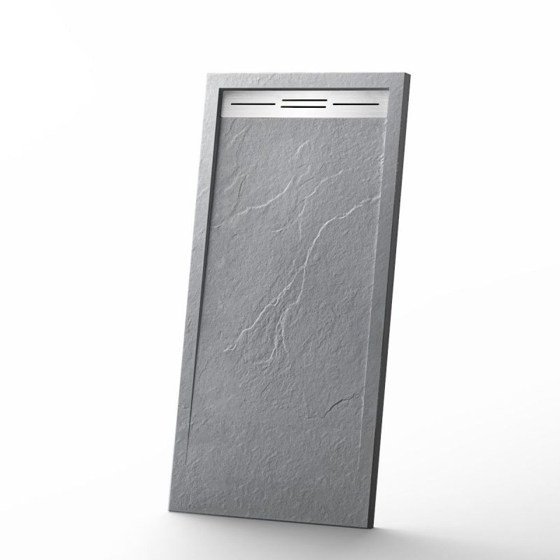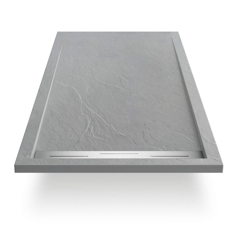 Duschwanne, Mineralkomposit, Maße 120x90 cm, Höhe 2,8 cm, zuschneidbar, Zementgrau, Gonzalo