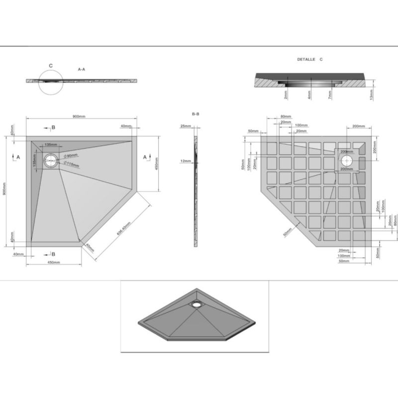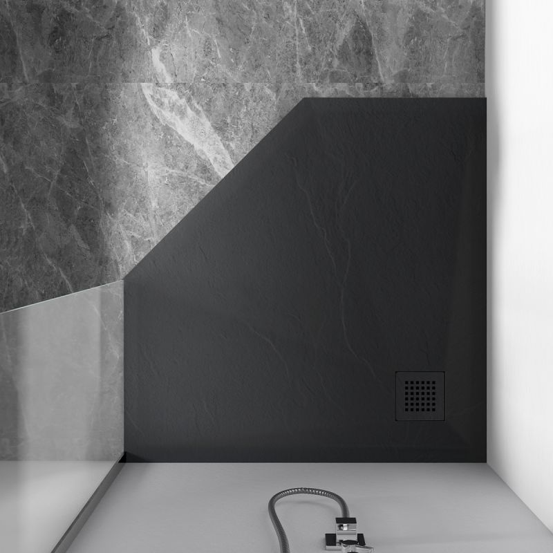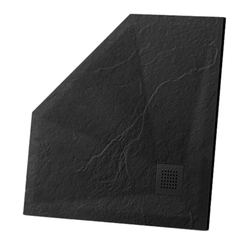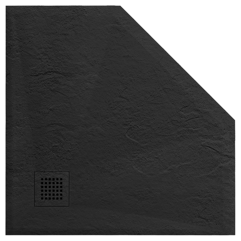 Fünfeckige Duschwanne, Mineralkomposit, Maße 90x90 cm, Höhe 2,5 cm, zuschneidbar, Schwarz, Aurelio