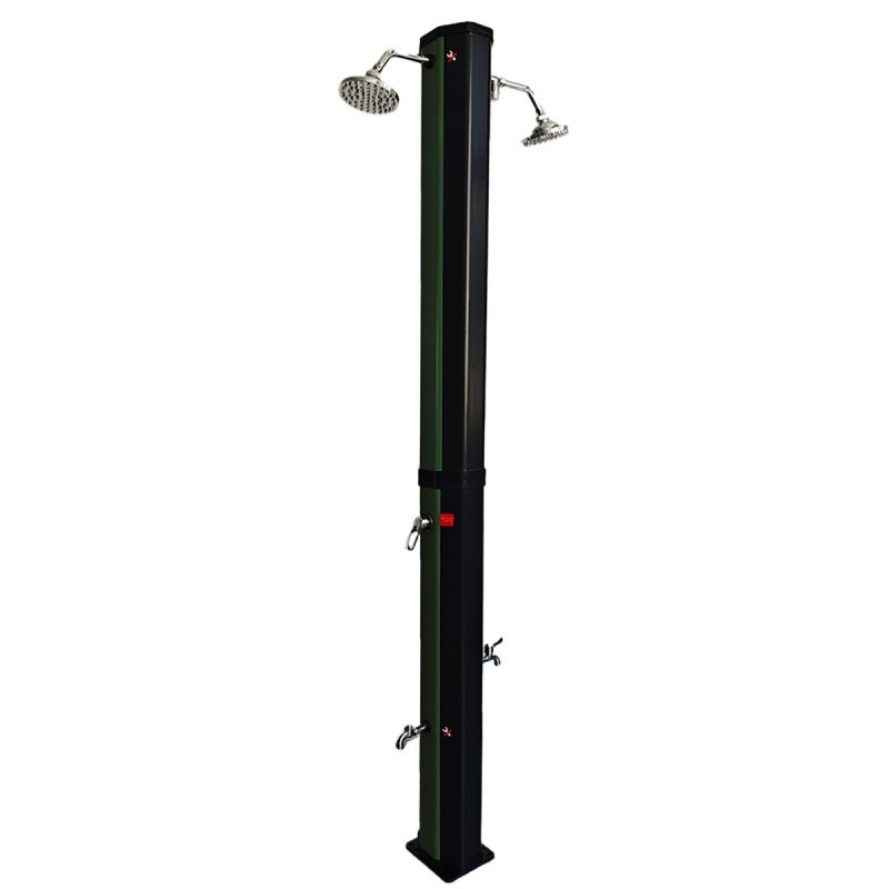 Die Ego Space Fresco-Dusche überzeugt durch ihre auffällige Farbkombination in Schwarz-Grün, die ihr ein modernes und frisches Erscheinungsbild verleiht. Hergestellt aus hochwertigem PVC und verchromtem ABS, ist sie speziell dafür konzipiert, langfristiger Sonneneinstrahlung, Feuchtigkeit und Temperaturschwankungen standzuhalten – ohne Einbußen bei Funktion oder Optik. Die verwendeten Materialien sind nicht nur langlebig, sondern auch pflegeleicht – ideal für den regelmäßigen Außeneinsatz.