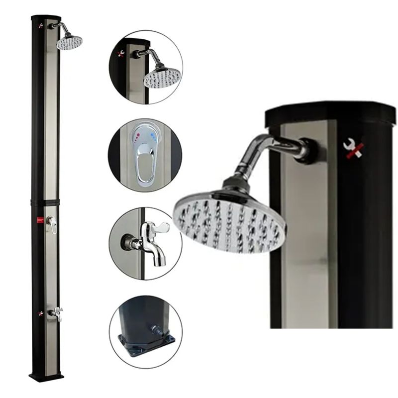 Solar-Dusche für Garten und Pool, 35 Liter, Fußdusche, Regenduschkopf, PVC+ABS, Schwarz, Matt Nickel, Cadiz