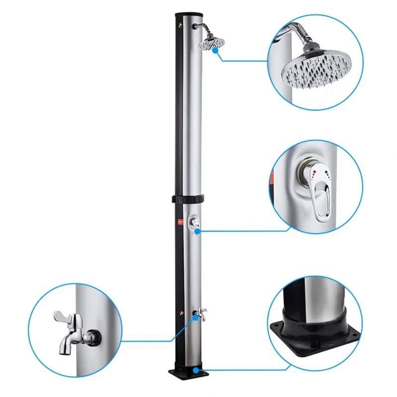 Einfache Installation und Nutzung: Die Solardusche wird mit Montagematerial wie Schrauben und Dübeln geliefert und lässt sich über einen Standard-Gartenschlauch anschließen. Dadurch ist die Installation schnell und unkompliziert.