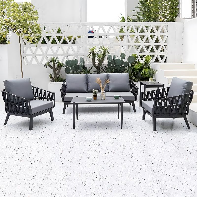 Möbelset für Garten oder Terrasse – Sofa, 2 Sessel, Couchtisch, Aluminiumrahmen und Seilgeflecht, Ray