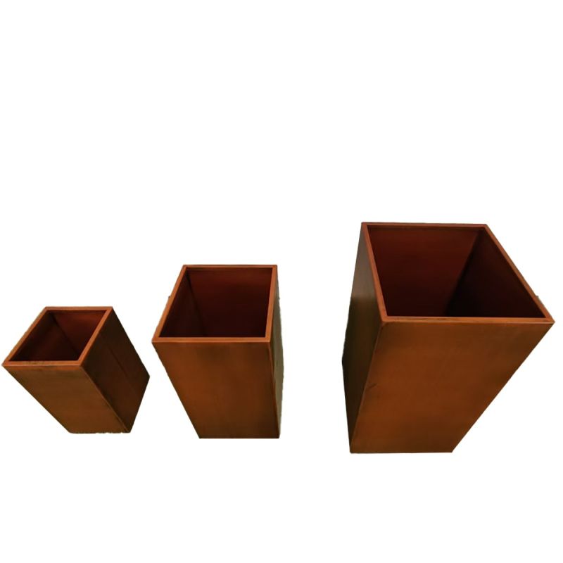 Gefertigt aus hochwertigem Cortenstahl mit 2 mm Materialstärke, überzeugt der Pflanzkübel durch seine ausgezeichnete Witterungsbeständigkeit und die natürliche Patina, die sich im Laufe der Zeit bildet. Cortenstahl ist ein besonderes Material, das für seine Fähigkeit bekannt ist, eine schützende Rostschicht zu entwickeln, die vor weiterer Korrosion schützt – ganz ohne Lackierung oder zusätzliche Behandlungen. Dieser natürliche Prozess sorgt nicht nur für Schutz, sondern auch für eine warme, elegante Optik in rötlich-braunen Tönen – ideal für moderne oder rustikale Gestaltungskonzepte.