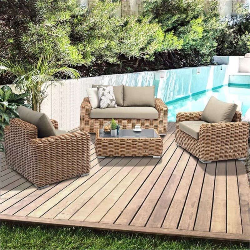 Möbelset, Garten oder Terrasse, Sofa, 2 Sessel, Kaffeetisch, Aluminiumgestell, Polyrattan, Augusta