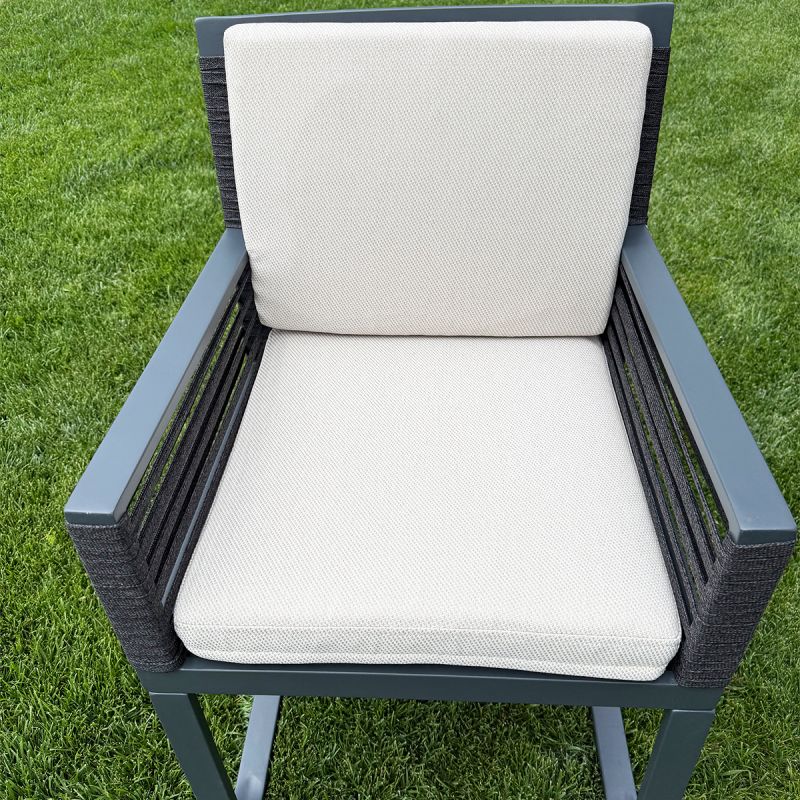 - Aluminiumrahmen – Bietet Stabilität, Korrosionsbeständigkeit und geringes Gewicht, perfekt für den Außeneinsatz. Die elektrostatische Pulverbeschichtung schützt vor Rost und Verblassen, sodass die Möbel jahrelang in einwandfreiem Zustand bleiben.