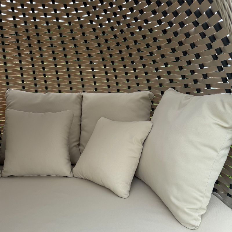 Die verwendeten Textilien sind speziell für den Außenbereich behandelt, UV-beständig, feuchtigkeits- und schmutzresistent und behalten ihre Textur und Farbe über lange Zeit.