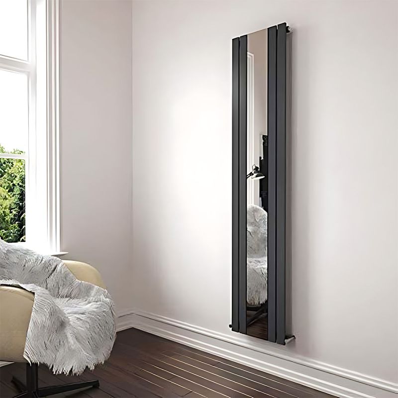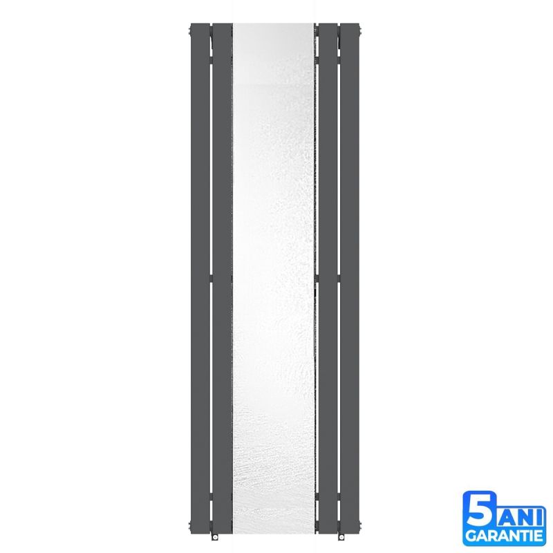 Dekorativer Heizkörper aus Stahl mit Spiegel, Anthrazit, 4 Elemente, 593 W, 180x60 cm, Malvina